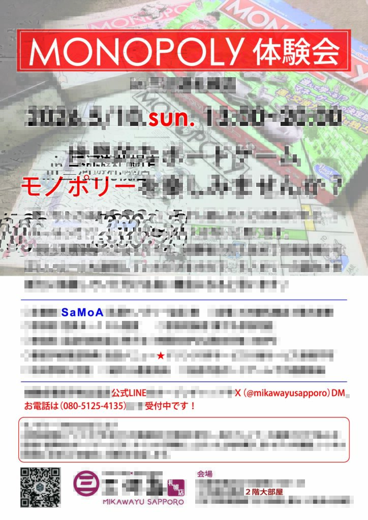 GW時期の開催とはなりますが参加者受付中です!イベント当日のお席へのご案内もご予約いただいた方が優先となりますで、検討中の方は是非お早めにお申込みやご予約に関しましては当店のX(@mikawayusapporo)でのチャットや、公式LINEやメール(mikawayusapporo@gmail.com)、お電話(080-5125-4135)または店頭でもお受けいたします。更に第3回の体験会も5/31(日)14時~19時開催予定です!
