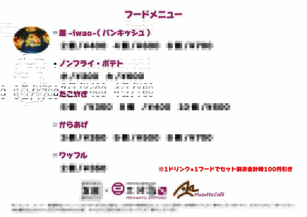 ※ドリンクは別料金となっておりますので、あらかじめご了承ください。