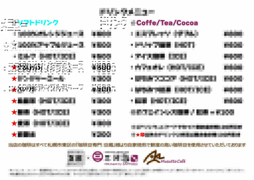 ★はLINEお友達登録いただいた場合や学割適用時のサービスドリンク対象となります。もちろん普通にご注文もいただけます。また、表記料金は全て消費税を含んだ料金となっております。